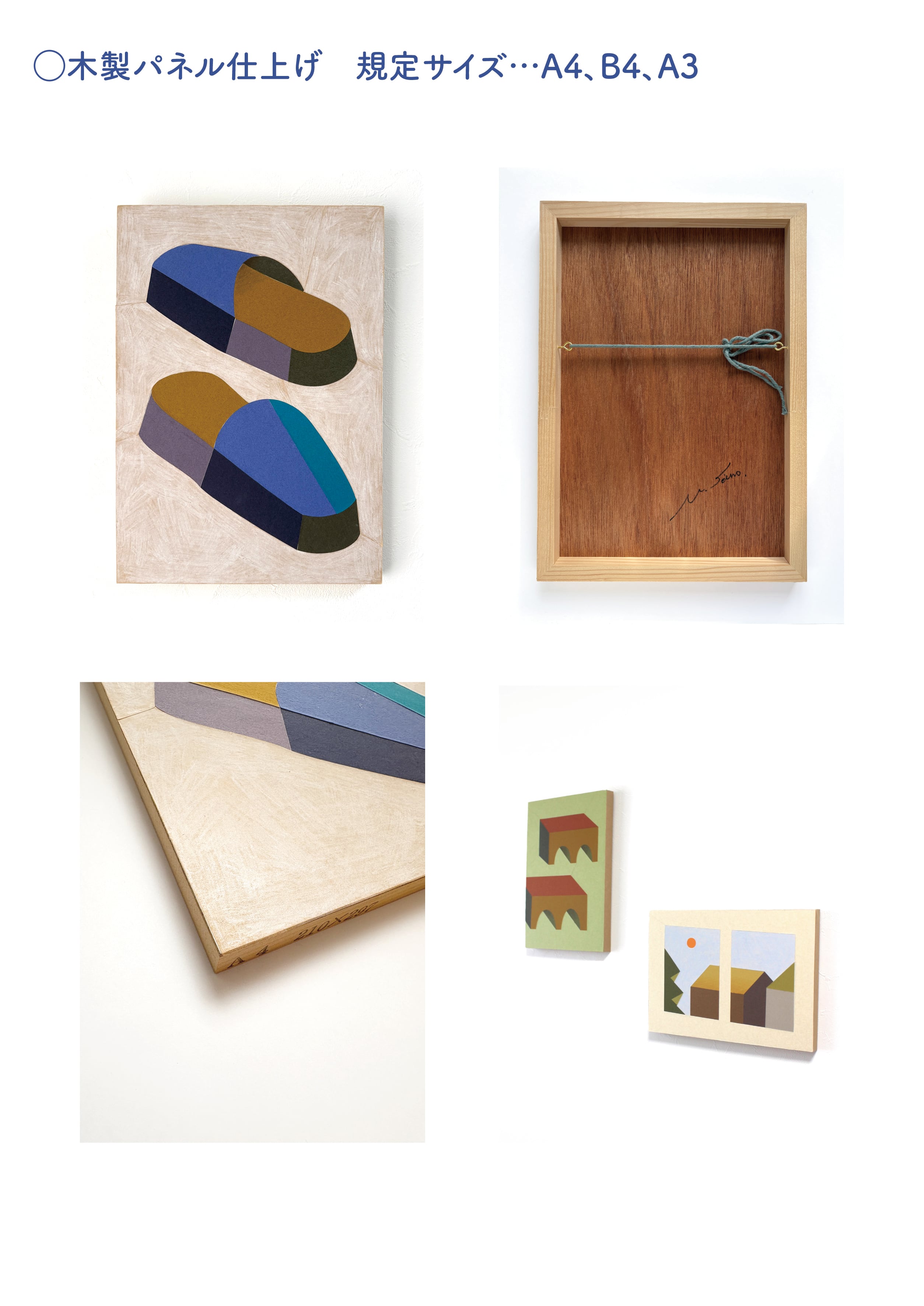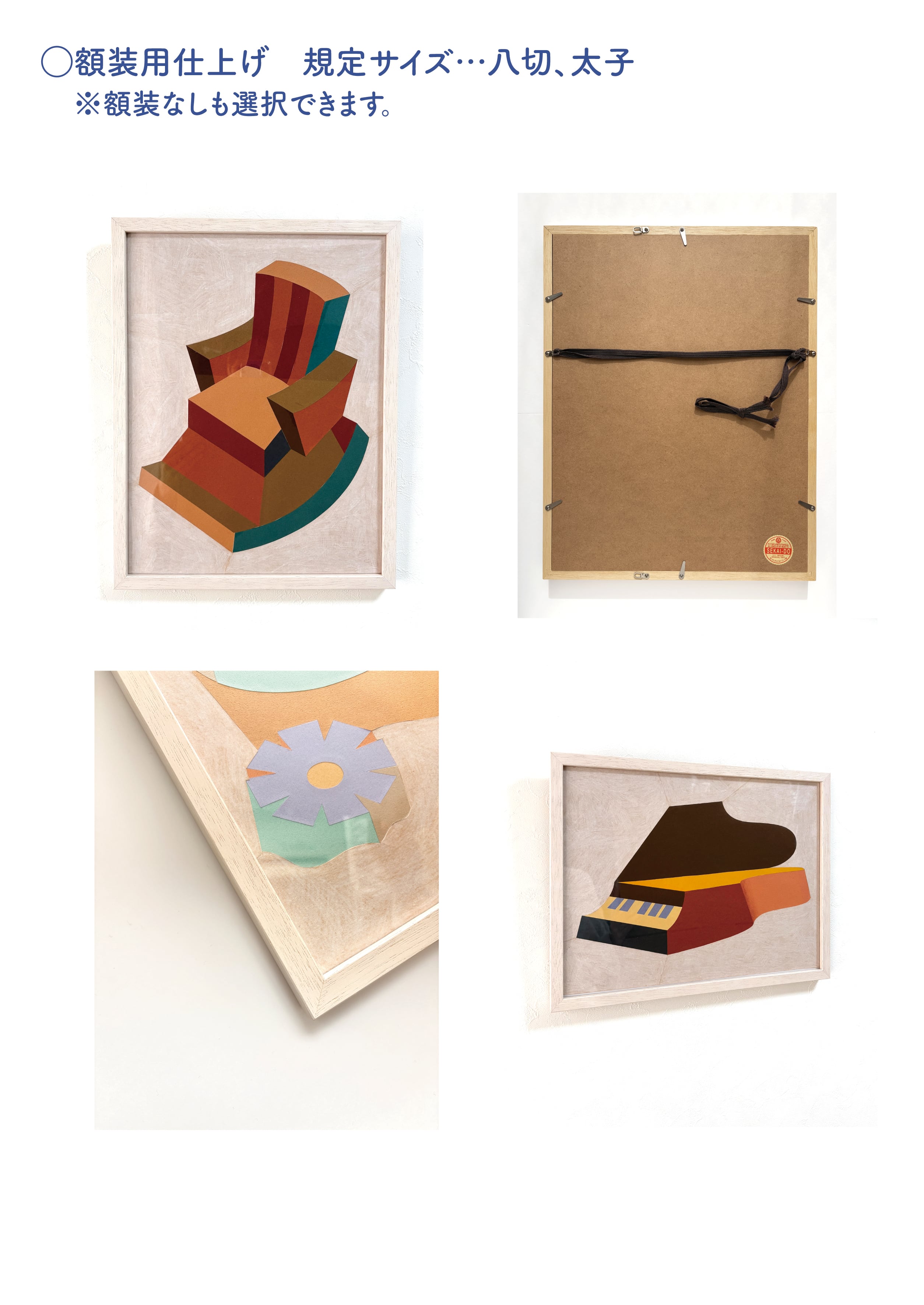 ○木製パネル仕上げ、額装用仕上げの2種類の仕様があります。